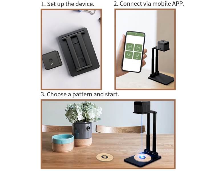 Vous pouvez sélectionner des motifs de gravure en prenant des photos, des images de la galerie de votre téléphone, des images de la galerie intégrée de l’application et en créant des motifs dans le bricolage.Après avoir terminé de travailler et d’éditer l’image, vous pouvez commencer à graver lorsque l’aperçu est OK.